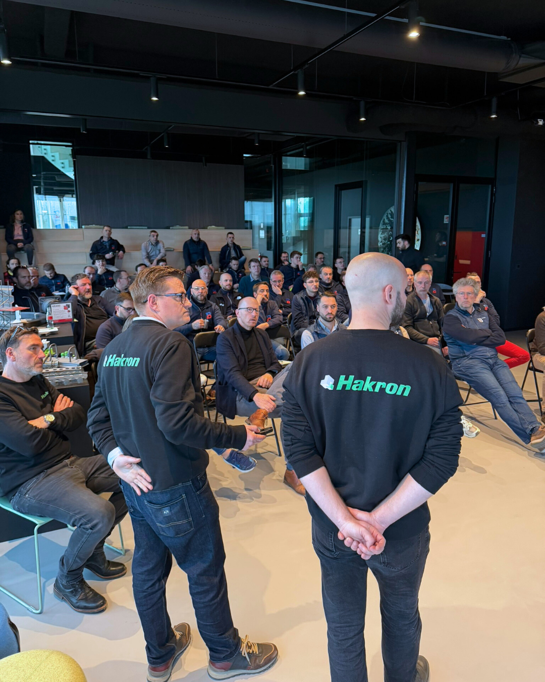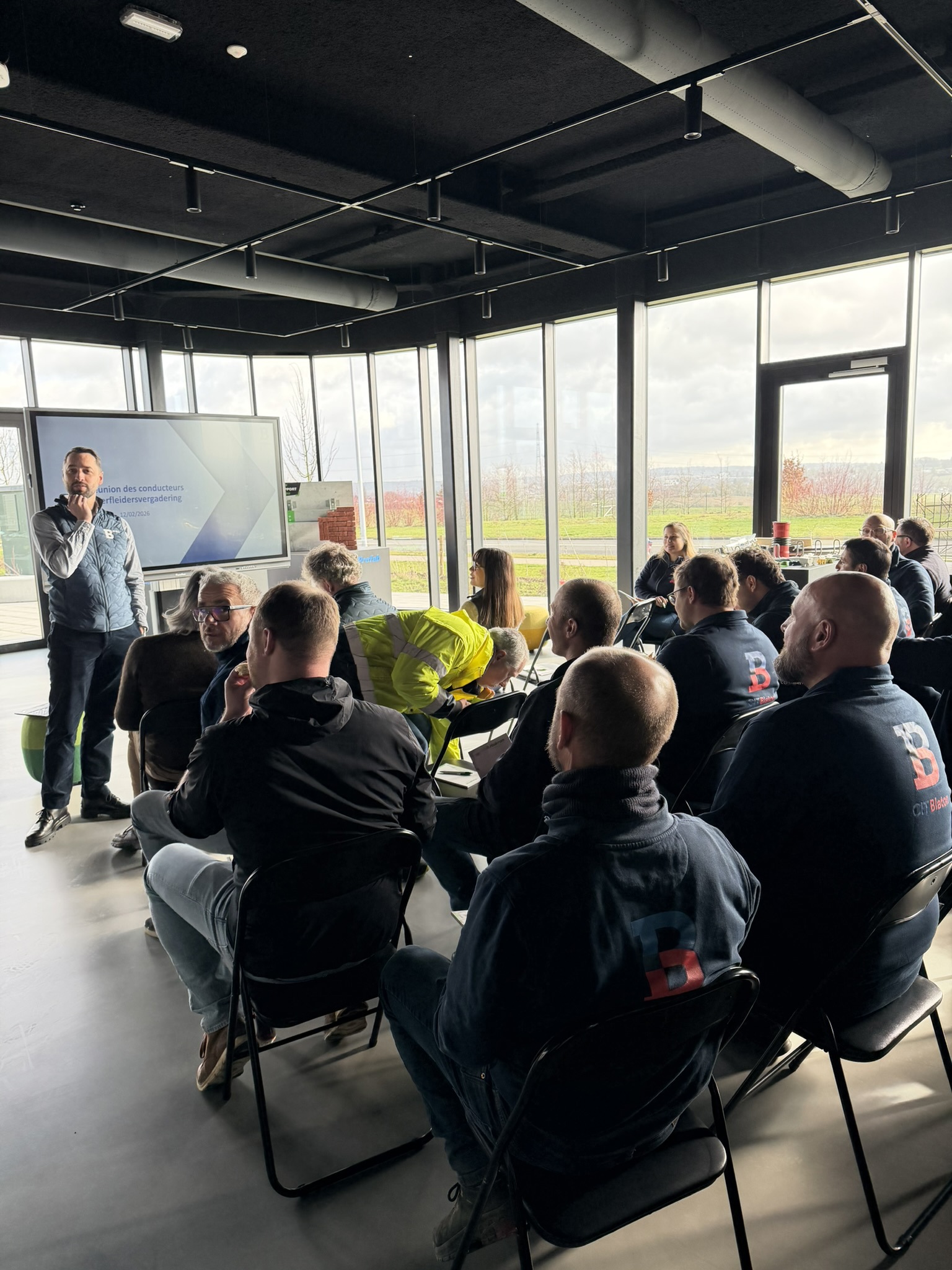 De dag startte met een gezamenlijke lunch, gevolgd door hun werfleidersvergadering bij ons ter plaatse. Nadien kregen de aanwezigen een rondleiding langs onze bureaus en het magazijn, zodat ze onze werking van dichtbij konden leren kennen.